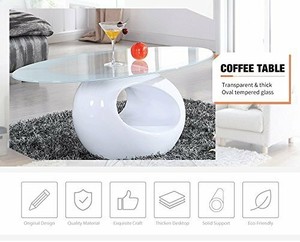 Ring Style White Oval Glass Coffee Table Modern Design Living Room