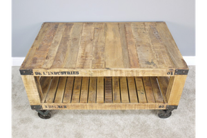 Industrial Style Wooden Coffee Table With Wheels Vintage Style Coffee