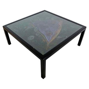 Modern Luxury Large Square Coffee Table Glass Ebony Stainless
