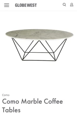 Globe West Como Marble Coffee Table Excellent Condition 80cm
