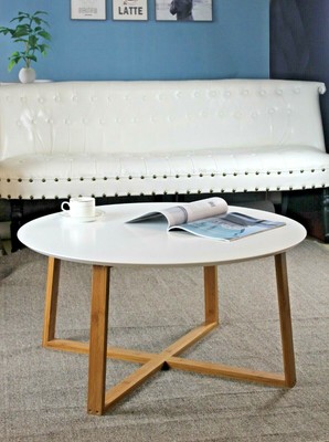Avery Round Coffee Table White Wooden Top Bamboo Legs Cft43 Ebay