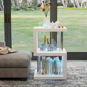 White Coffee Side End Table Led Light Nest Of 3 Coffee Table